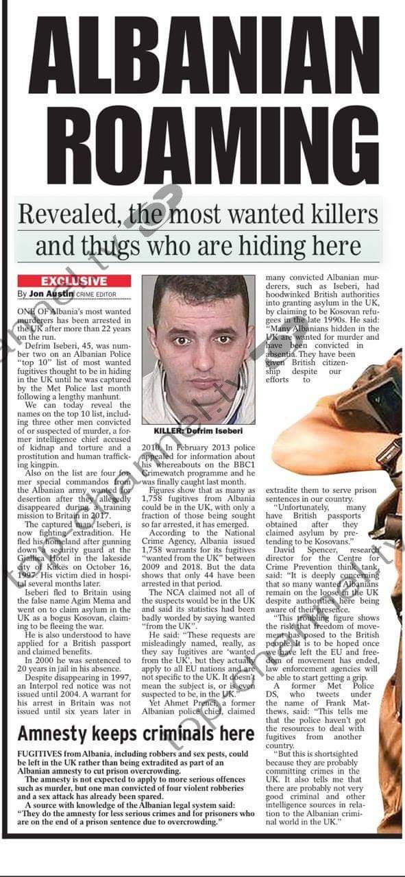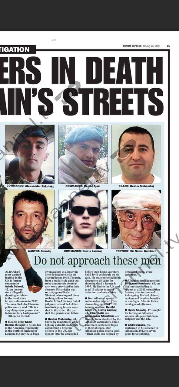 0Edhe njëherë tjetër, Britania e Madhe ka treguar shqetësimin për shqiptarët. Gazeta “Sunday Express”, i ka kushuar një investigim special 10 shqiptarëve më të kerkuar që fshihen në Britaninë e Madhe. Në listën me 10 personat më të kërkuar janë vrasës, ushtarakë, apo edhe persona që merren me trafik droge dhe prostitucion, shkruan gazeta.