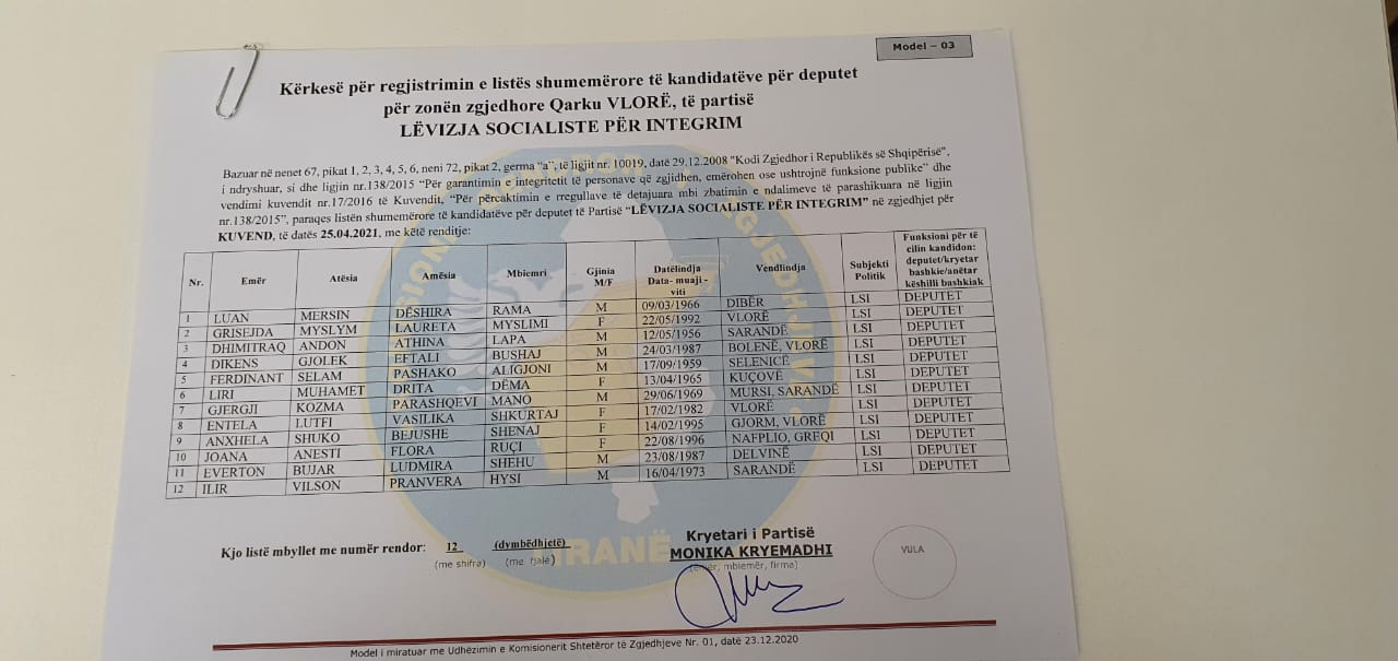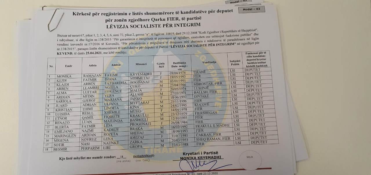 Kryetarja e LSI-së, Monika Kryemadhi këtë të hënë ka prezantuar kandidatët në 12 qarqet e vendit për zgjedhjet e 25 prillit. Vihet re se ka pasur lëvizje të mëdha të disa prej figurave më të rëndësishme të partisë, ku zv/kryetari Luan Rama është dërguar i pari në Vlorë. Tirana është “blinduar” me Klajda Gjoshën, Erisa Xhixhon, Petrit Vasilin apo Përparim Spahiun.