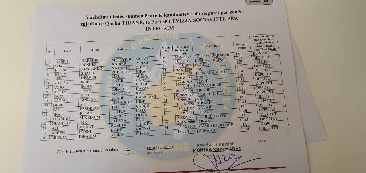 25 prilli, Kryemadhi publikon listat e kandidatëve të LSI-së: Emrat janë profesionistë në fusha të ndryshme