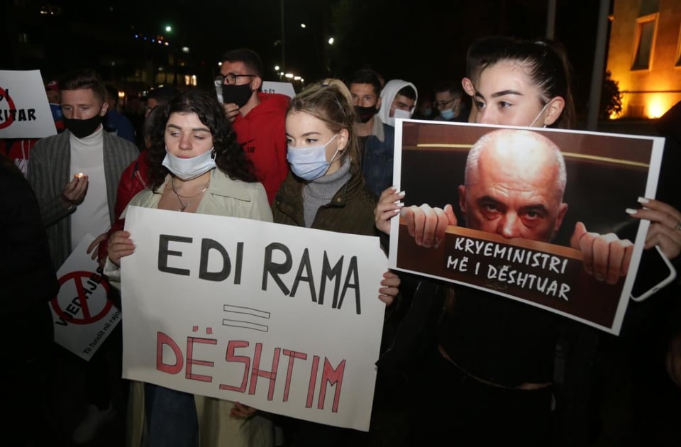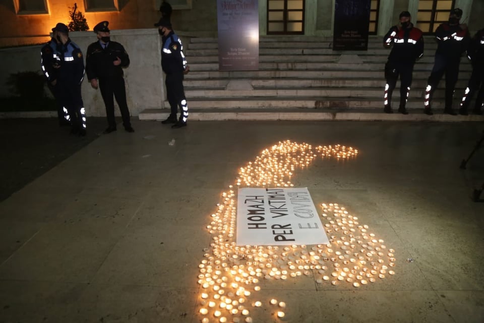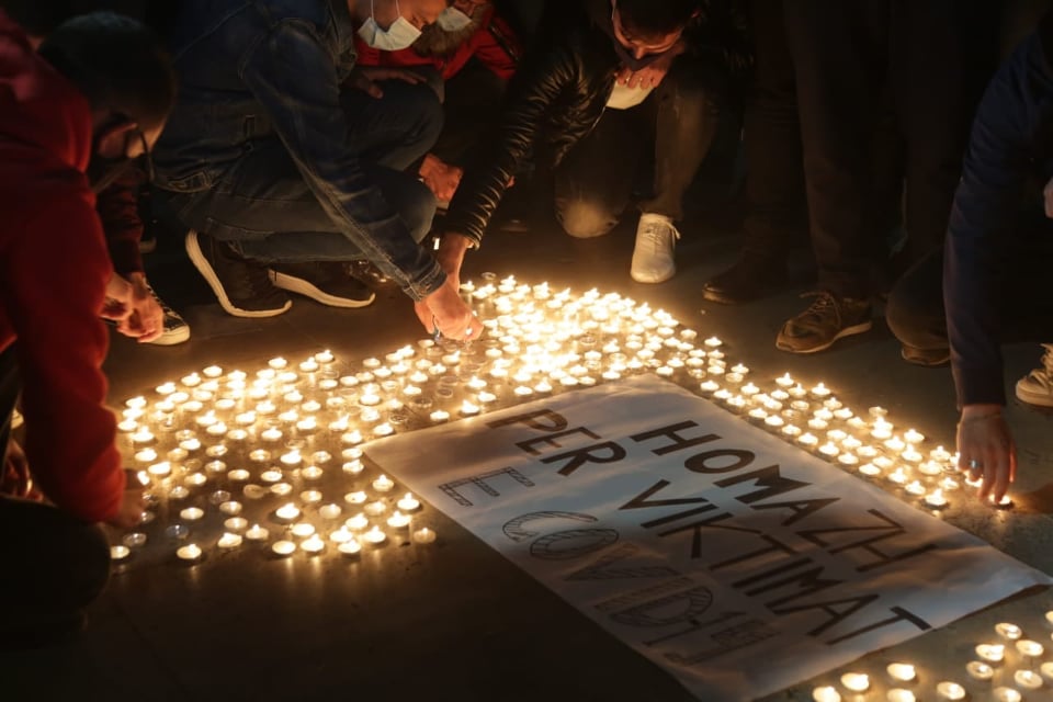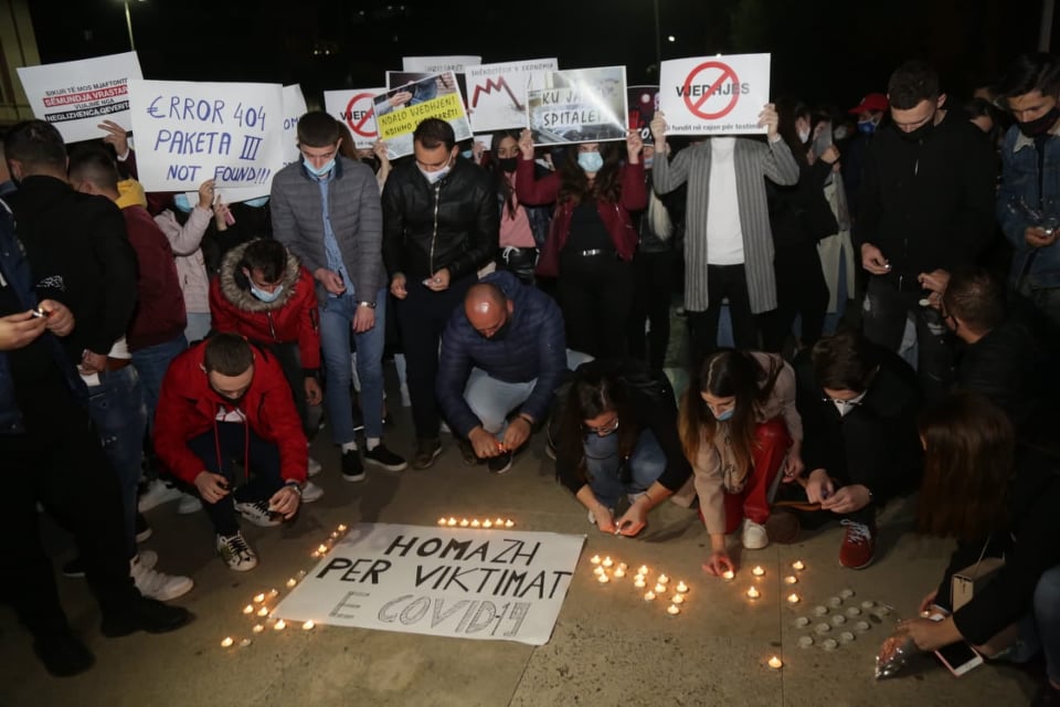 Të rinjtë kanë ndezur qirinj dhe kanë pasur me vete pankarta ku shkruhej “Homazhe në nder të viktimave të Covid-19”. Në një tjetër pankartë të të rinjve shkruhej “Sikur të mos mjaftonte sëmundja vrastare, vuajmë nga neglizhenca qeveritare”. Kurse, në një tjetër pankartë shkruhej: “Ndalo vjedhjen, ndihmo shqiptarët”.