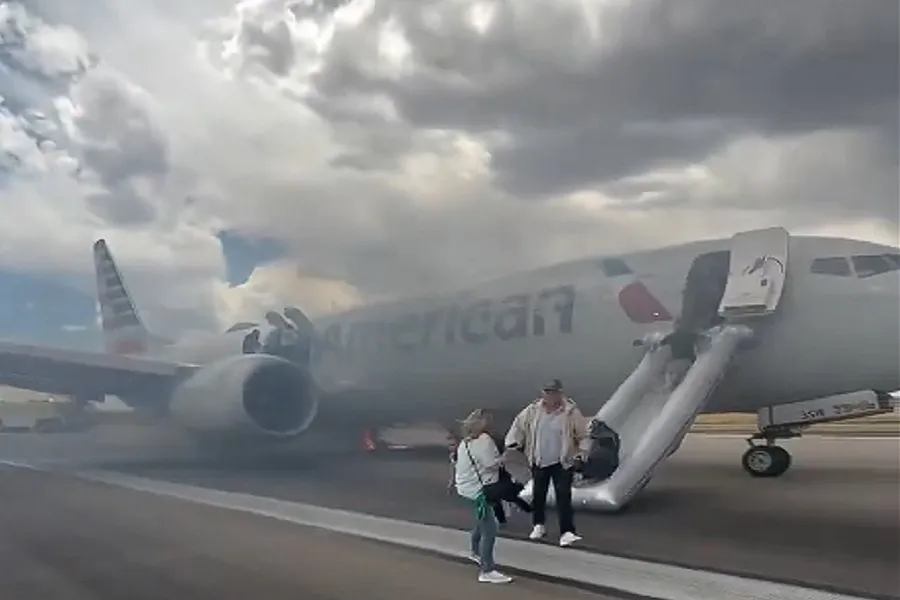 Aeroplani i American Airlines u përfshi nga flakët, video e daljes së pasagjerëve nga avioni