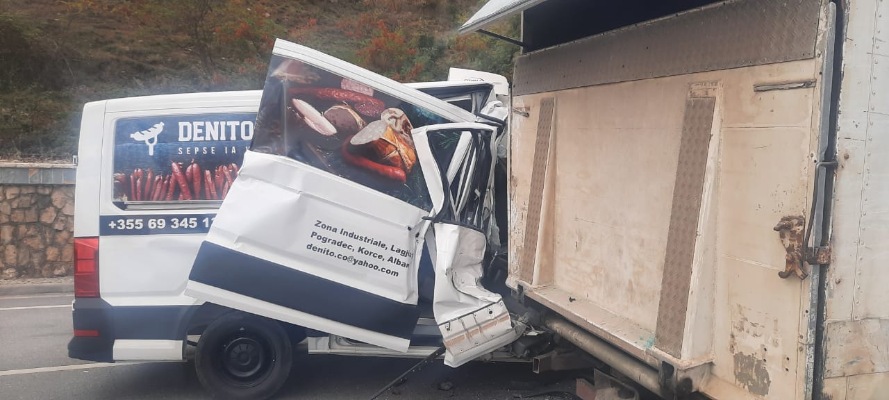 Aksident i frikshëm në aksin Pogradec-Lin! Furgoni i mallrave përplaset me kamionin, ja si ka përfunduar