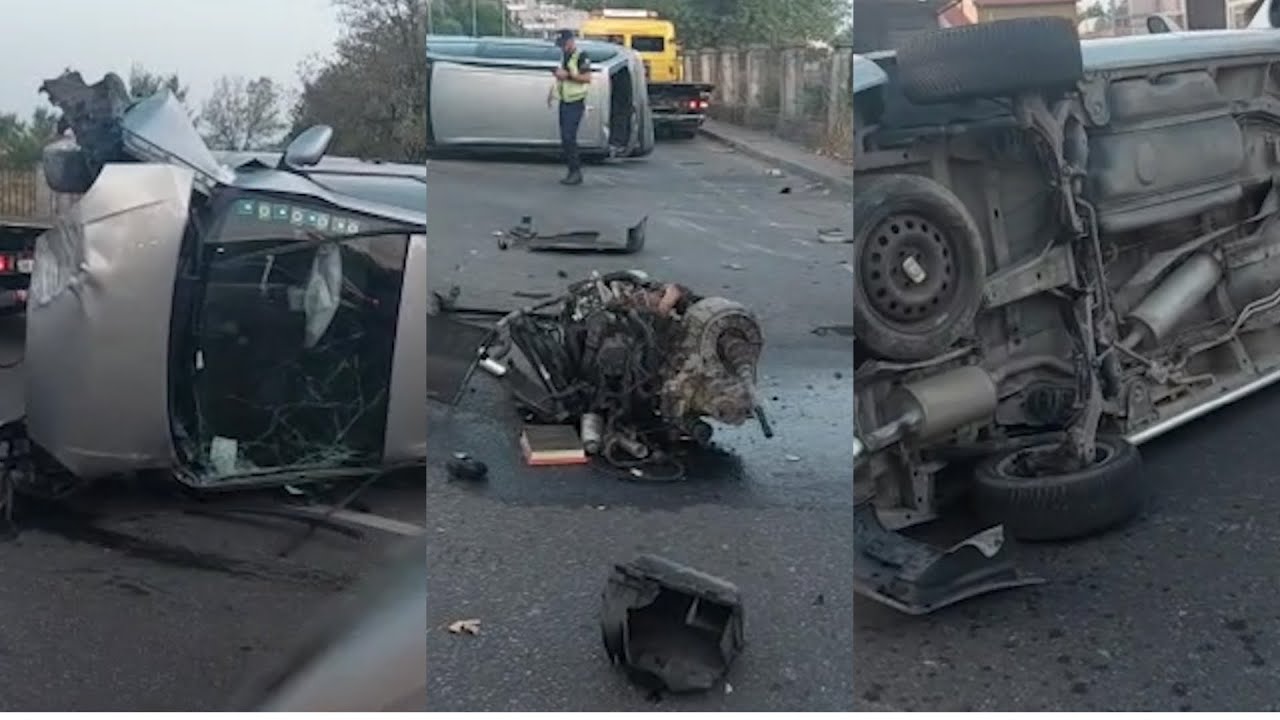 Aksident i frikshëm në Shkodër, makina përmbyset në rrugë