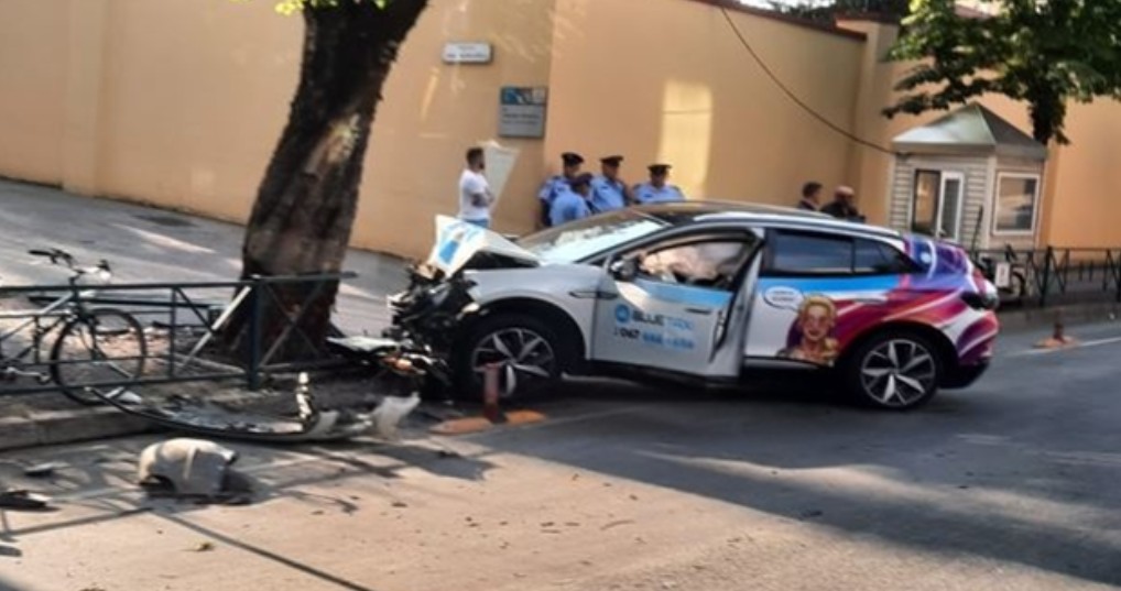 Taksia e përfshirë në aksident i përket kompanisë “Blue Taxi”, teksa pema dhe kangjellat kanë shmangur tragjedinë, pasi makina mund të përfundonter në trotuar, duke perplasur këmbësorë që ishin në rrugën e tyre.