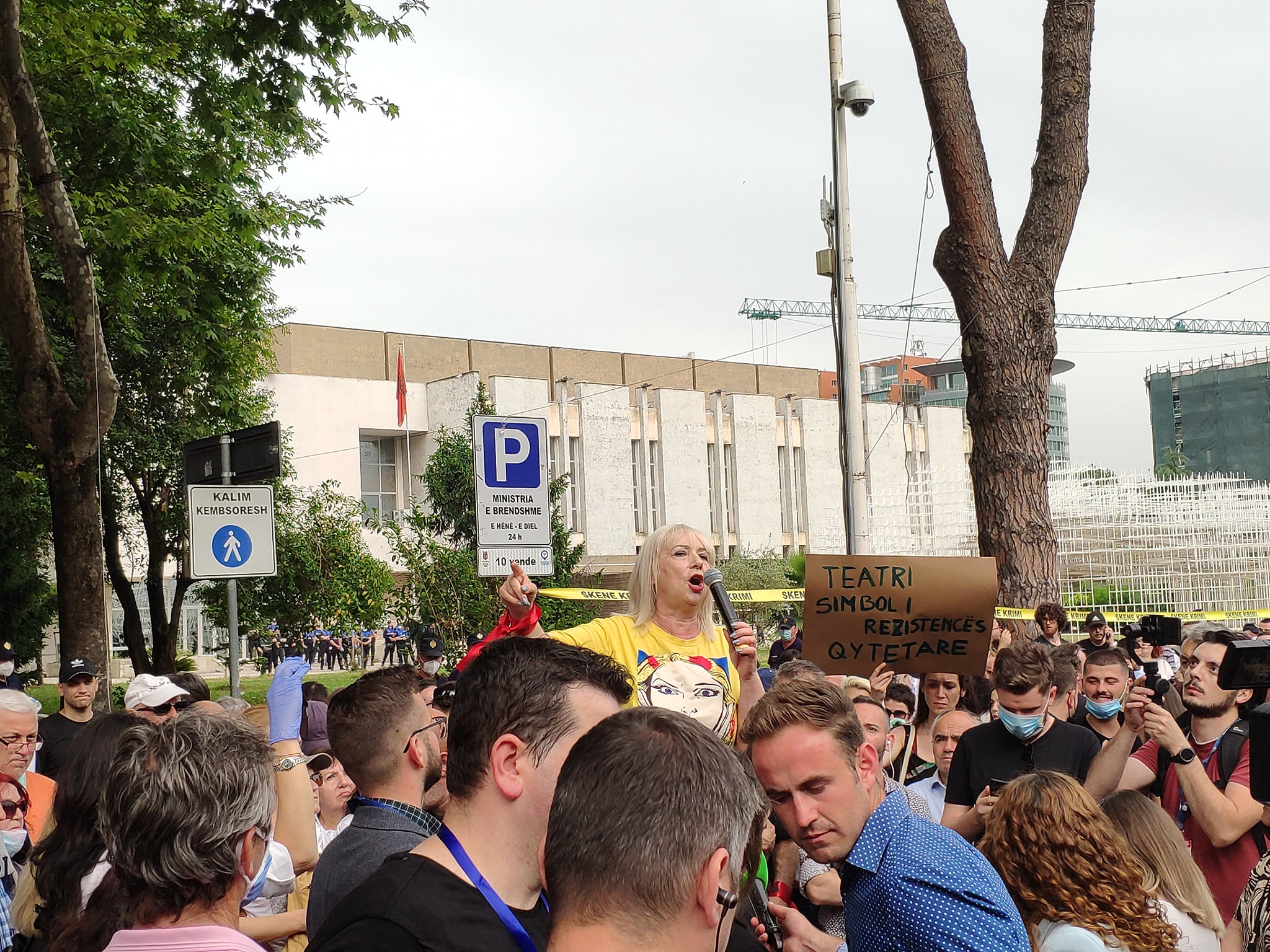 Aktivistja dhe avokatja Ardiana Kalaja deklaroi nga protesta kundër vendimit për shembjen e teatrit Kombëtar se banditë me uniforma të policisë shkuan dje për t’i vrarë artistët.