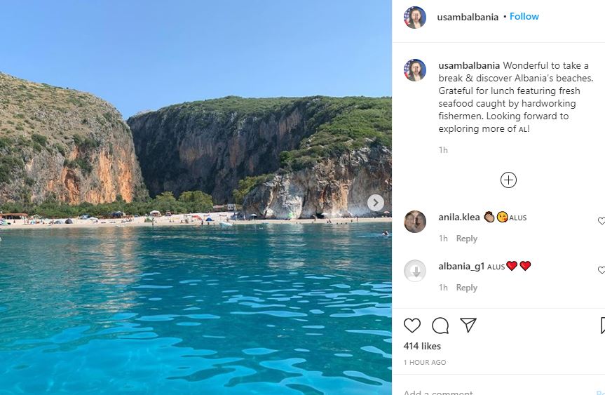 Një ditë më parë, diplomatja e SHBA publikoi pamje nga bregdeti shqiptar duke vlerësuar ushqimet e freskëta. “Mrekulli të bësh një pushim të shkurtër dhe për të zbuluar plazhet e Shqipërisë. Mirënjohëse për drekën që përmban ushqime deti të freskëta të kapura nga peshkatarët punëtorë. Mezi pres të eksploroj më shumë”,- shkruan Yuri Kim në mesazhin e publikuar në Instagram.