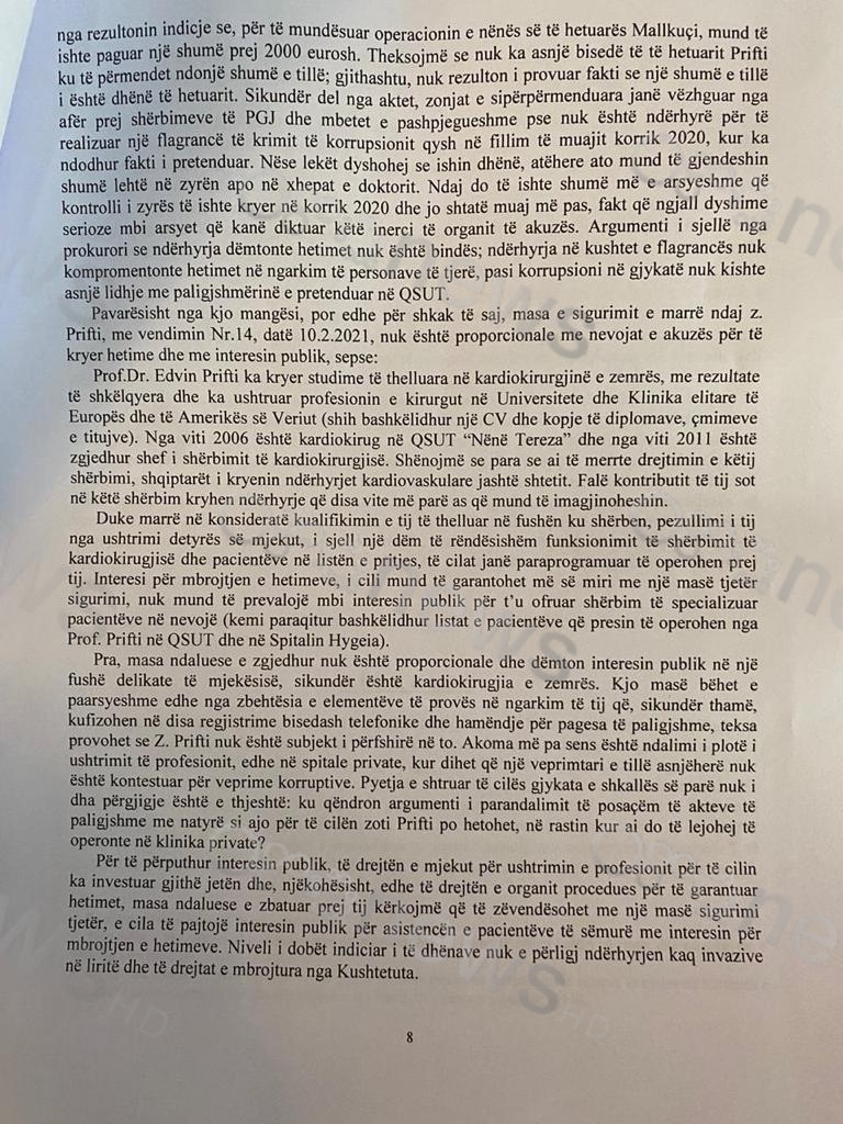 Ku qëndron argument i parandalimit të posaçëm të akteve të paligjshme me natyrë si ajo për të cilën po hetohet Prifti, në rastin kur ai do të lejohej të operonte në klinika private?”