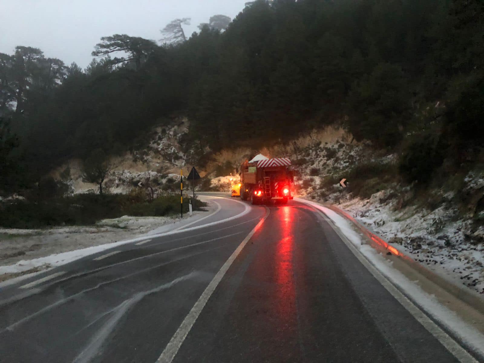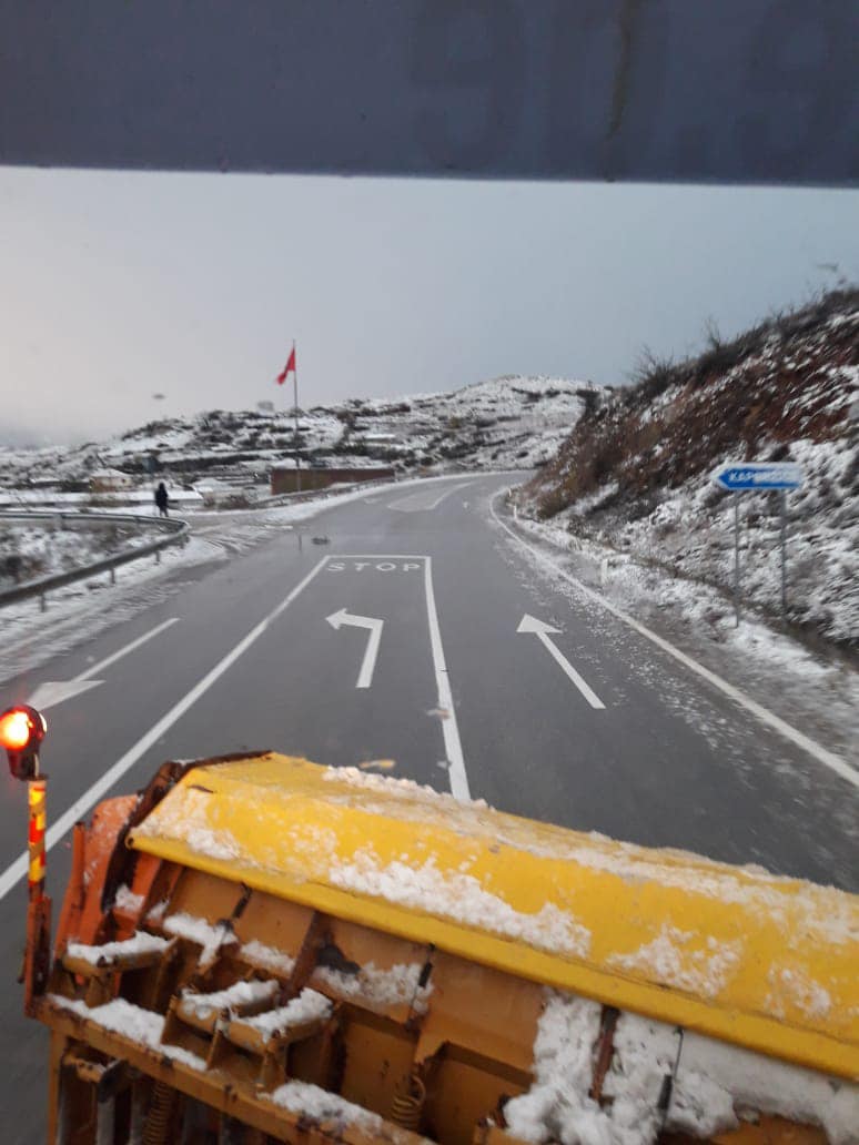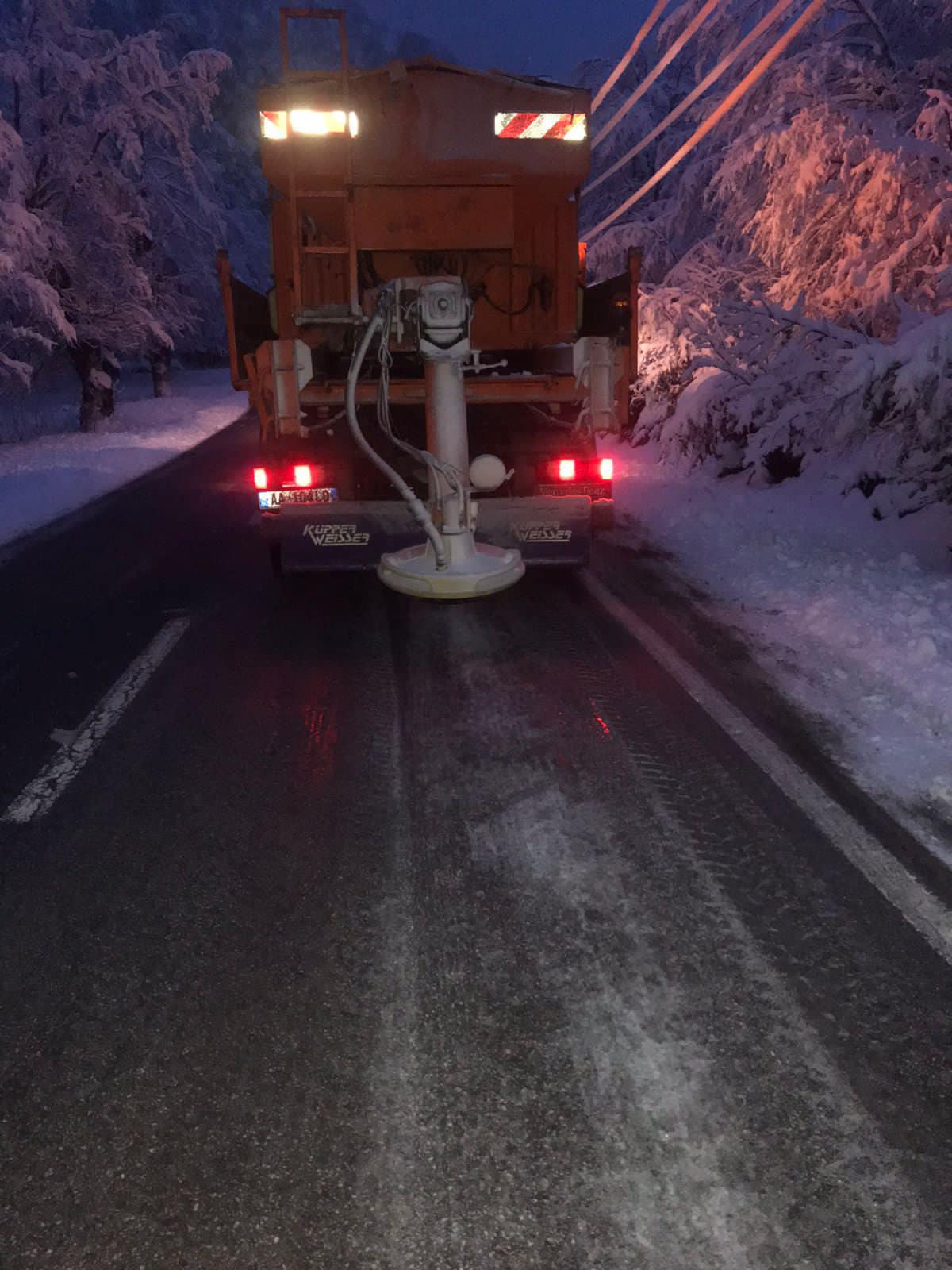 Kontraktorët kanë punuar gjatë gjithë natës me mjete borëpastruese dhe punëtorë për pastrimin e rrugës nga bora, shpërndarjen e kripës dhe nga materialet inerte ne ato segmente ku kanë vijuar reshjet e shiut.
