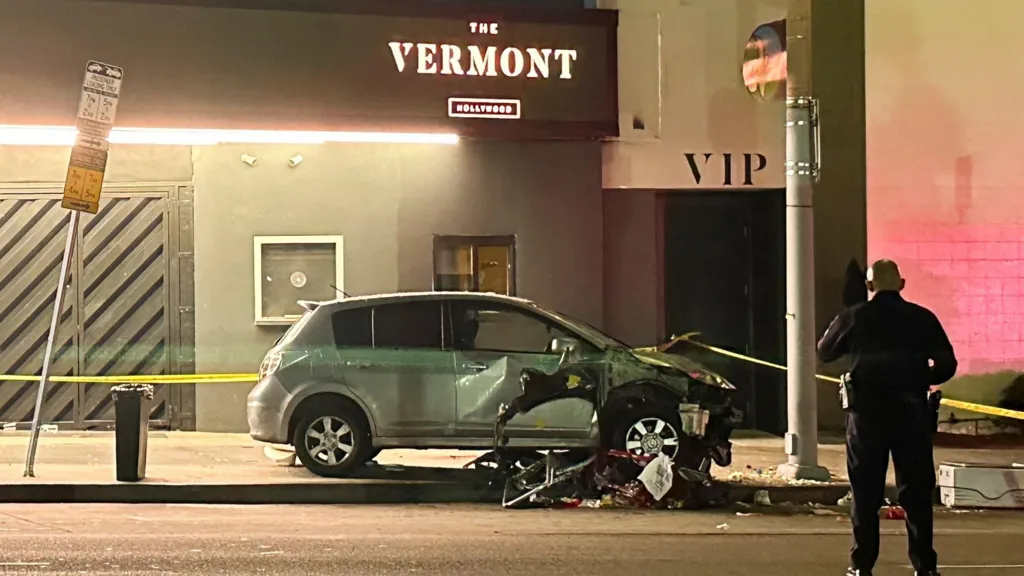 Sipas Departamentit të Policisë së Los Angeles (LAPD), 30 persona u plagosën në incidentin e ndodhur në orët e para të së shtunës jashtë klubit të natës Vermont Hollywood në East Hollywood. Rreth orës 02:00 me orën lokale (09:00 GMT), një radhë kryesisht me gra po priste të hynte në ambient, kur një Nissan Versa përfundoi mbi turmë.