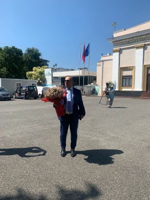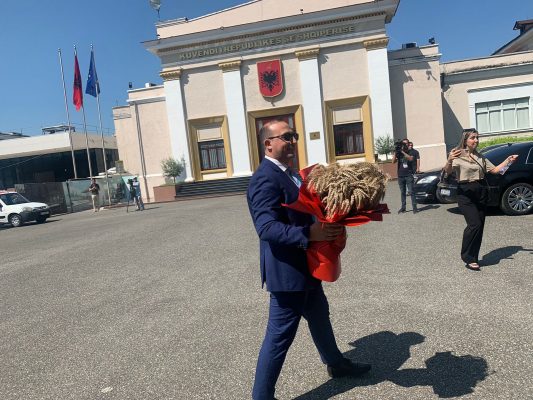 Befason deputeti demokrat, shkon në Parlament me një buqetë me kallza gruri