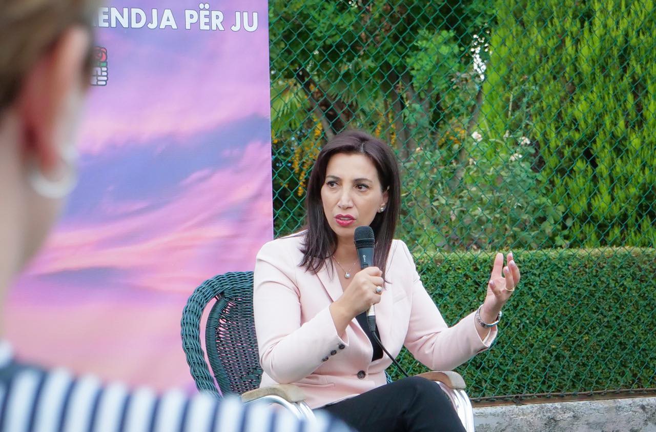 “Bërtiti” sot para mësuesve për maskat në shkolla, ministrja shfaqet vetë pa maskë duke kërkuar vota në Elbasan