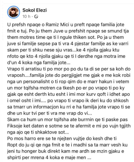 Vëllai i Jetlirës, Sokol Elezi, ka kërcënuar Ramis Micin.