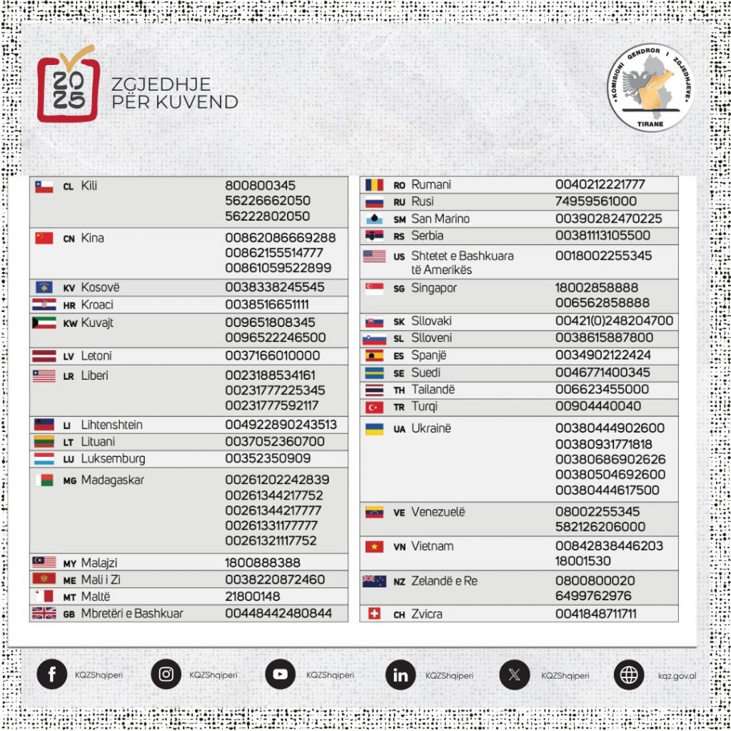 Kreu i KQZ-së ka publikuar listën e kontakteve të shërbimit postar sipas shteteve.