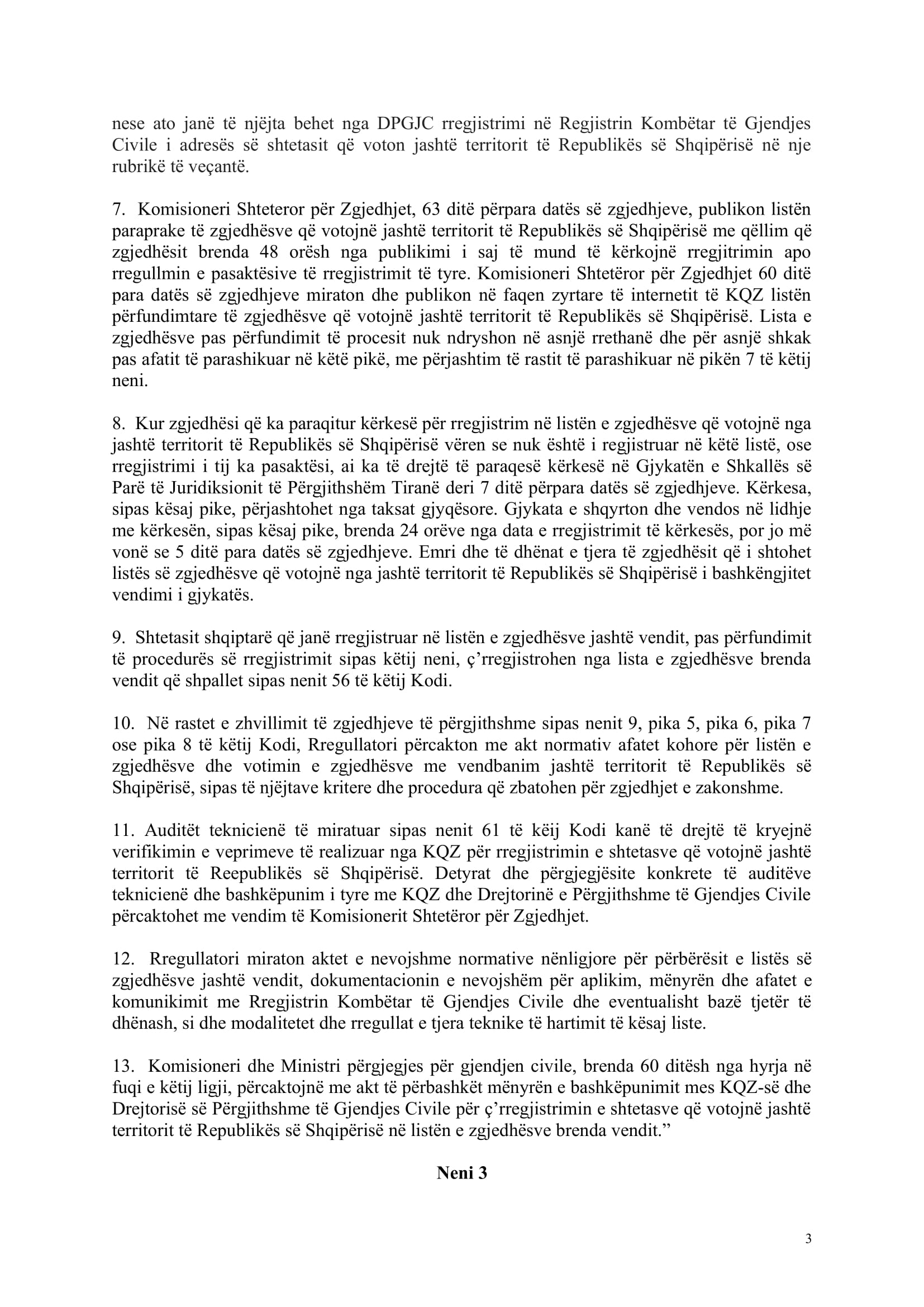 Rirenditja sipas kësaj pike përdoret në zbatimin e nenit 164 të këtij Kodi. Mandatet për kandidatët fitues fillimisht shpërndahen sipas renditjes së listës shumëemërore të fiksuar të subjektit zgjedhor dhe në përputhje me renditjen e kandidatëve në të, dhe në rast shterimi të saj vijohet me kandidatët fitues të rirenditur të listës shumëemërore që i nënshtrohen votimit parapëlqyes sipas pikës 2 të këtij neni.