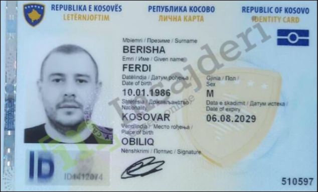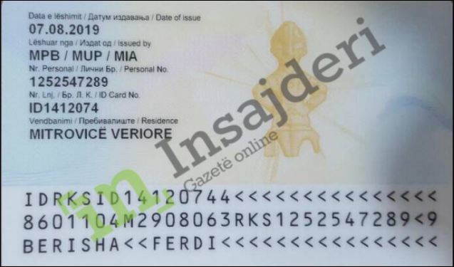 Dergjini, është pajisur me identitet të ri në Kosovë. Emri i tij është Ferdi Berisha, i lindur më 10 janar 1986 në Obiliq. Vendbanimi në Mitrovicën e Veriut. Dergjini është pajisur me letërnjoftim të Republikës së Kosovës më 7 shtator të këtij viti. Insajderi ka siguruar kopjen e letërnjoftimit të tij.