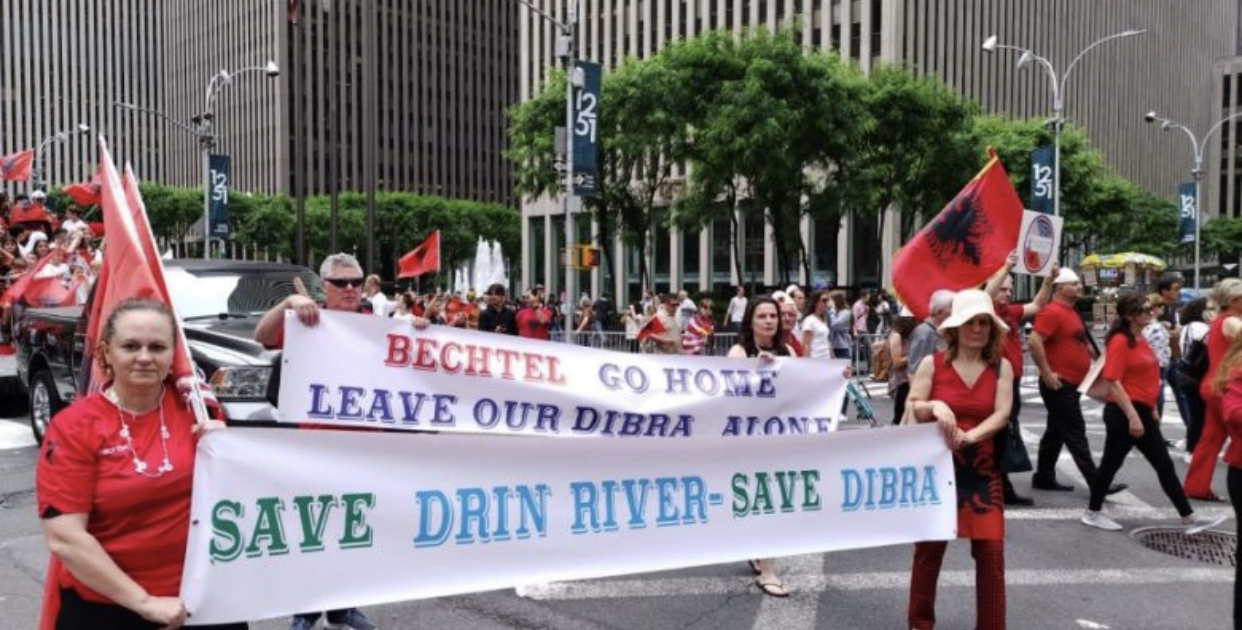 Dibranët në New York kanë protestuar sot me pankarta në duar kundër ndërtimit të HEC-it të Skavicës.