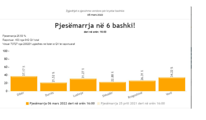 Deri tani me dobët paraqiten bashkia Durrës dhe Shkodër në pjesmarrjen në votime.