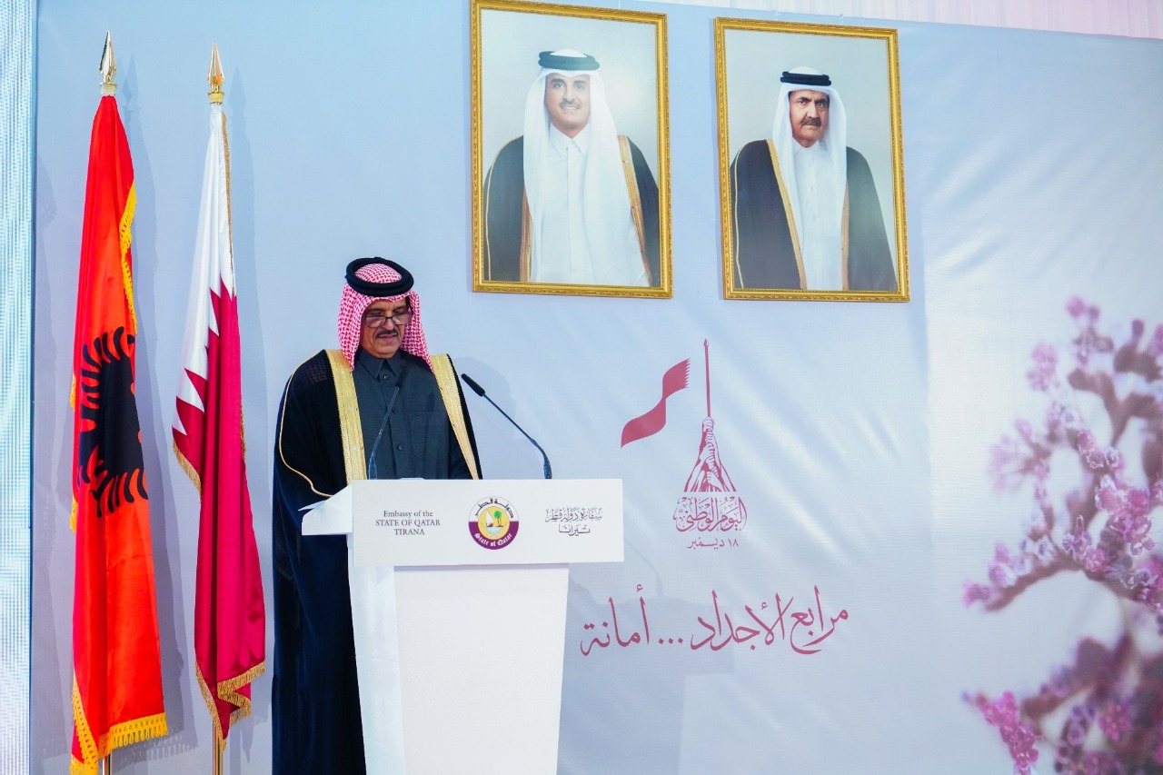 Në fjalën e tij përshëndetëse, Ambasadori i Katarit në Shqipëri Sh.T.Z. Ali bin Hamad Al Marri theksoi se Dita Kombëtare nderon themeluesin Sheikh Xhasim bin Muhamed bin Thani, i cili në vitin 1878 hodhi themelet e shtetit modern të Katarit, dhe nën udhëheqjen e tij vendi u shndërrua në një shtet sovran, të bashkuar e të pavarur.