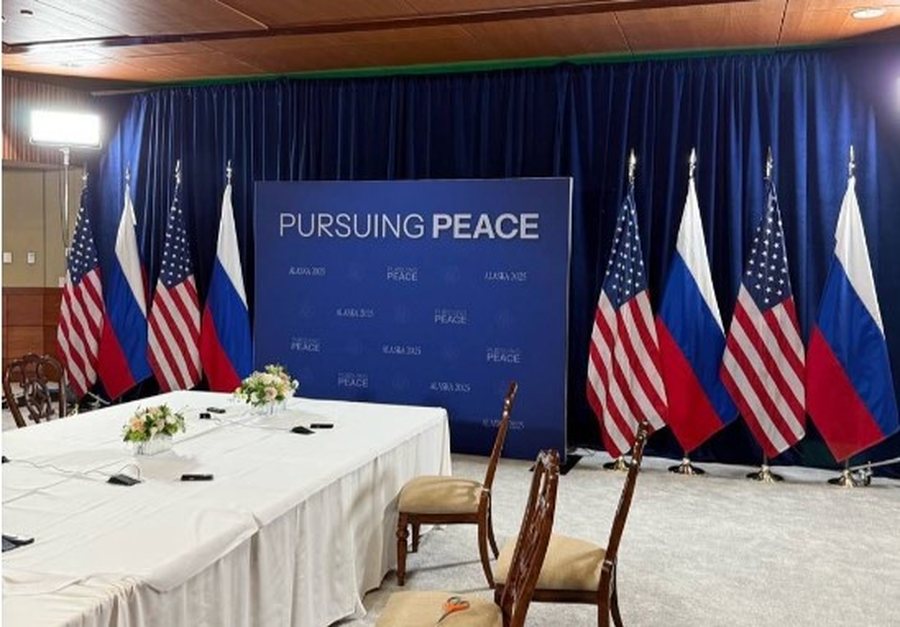 Një foto ka zbuluar detaje të reja nga vendi se ku do të mbahet takimi me presidentëve të SHBA, Donald Trump dhe atij rus, Vladimir Putin. Në tryezën e vogël, është vendosur një afishë e madhe, ku shkruhet me të mëdha “në kërkim të paqes”. Sekretari i Shtetit, Marco Rubio, dhe i dërguari Steve Witkoff do t’i bashkohen Trumpit në anën amerikane të tryezës së bisedimeve, ndërsa ministri i Jashtëm Sergei Lavrov dhe ndihmësi i tij, Yuri Ushakov, do të shoqërojnë Putinin.