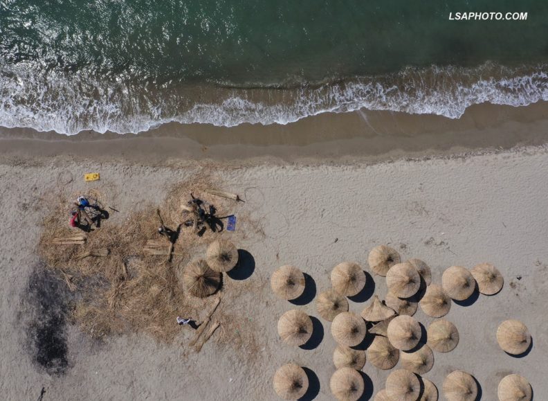 Do ketë plazh? Punëtorët në Shqipëri thurin çadrat (FOTO)