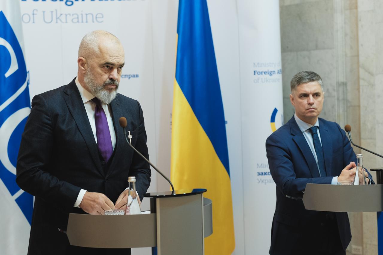 Kryeministri Edi Rama në cilësinë edhe të kreut të Presidencës së OSBE u shpreh i gatshëm për të zgjidhur krizën në Ukrainë dhe zonat përreth. Gjatë një konferencë të përbashkët me Ministrin e Punëve të Jashtme, Vadym Prystaiko, Rama dhe se duhen ndërmarrë hapa nga kryesia e radhës e Shqipërisë në OSBE për të lehtësuar jetën e popullsisë në të dy anët e kufirit.