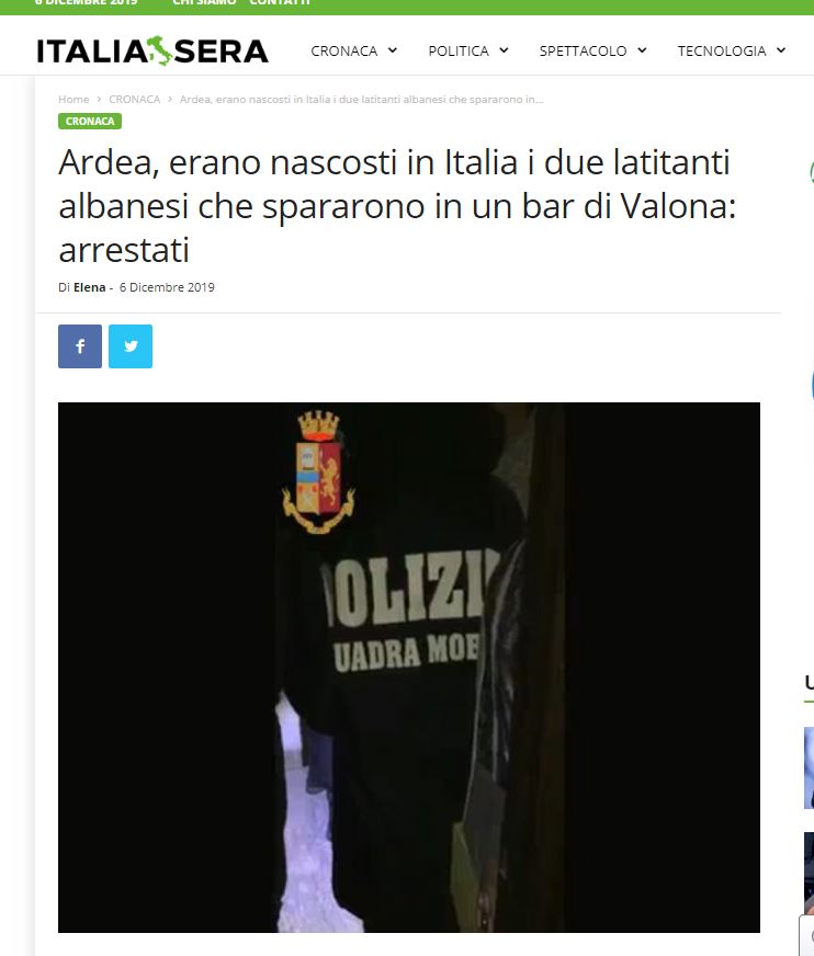 Policia italiane, në bashkëpunim të ngushtë me atë shqiptare kanë identifikuar, lokalizuar dhe më pas arrestuar shqiptarët e quajtur Igli Memaj dhe Gentjan Dautaj, përkatësisht 31 dhe 42 vjeç, të dy banues në Vlorë, Shqipëri. Ata u pikasin teksa udhëtonin me një makinë tip “Mercedez Benz” në rrethinat e kryeqytetit italian, Romë, në zonën midis Ardea dhe Aprilia.