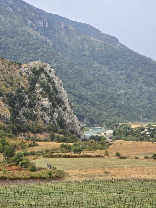 Ndërsa lart jehonin zërat e priftit dhe gruas së tij, poshtë gurgullonte uji i kristaltë i Vjosës, lumit më të madh të Shqipërisë jugore, për shpëtimin e të cilit qe angazhuar edhe aktori Leonardo DiCaprio. Vjosa është 272 kilometra e gjatë, me një sipërfaqe të pellgut ujëmbledhës prej 6706 kilometra katrorë, prej të cilave, 4365 janë brenda territorit të Shqipërisë, ndërsa pjesa tjetër në territorin grek. Degët kryesore të Vjosës janë: Sarandoporo, Drinosi dhe Shushica.