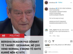 Braçe ka ironizuar reagimin e ish-kryeministrit Sali Berisha për dënimin me 3.4 vite burg ndaj Saimir Tahirit.