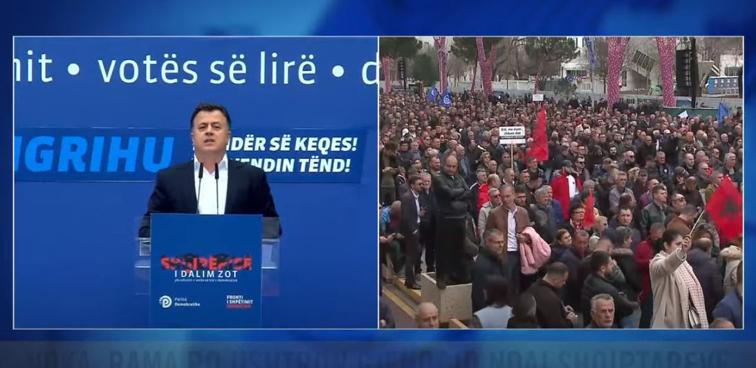“Kjo protestë sot kulmon me qëndrimin tuaj të palëkundur kundër rikthimit të monizmi, kur një neodiktature. Edi Rama sot ju ka lëshuar në shtëpinë e shqiptarëve 200 hajdutë. Enver Hoxha po përpiqet që të vrasë PD me gjykata. Vëllezër dhe motra i ka plotësuar kuadrin e Hagës për krime kundër shqiptarëve. Ai nuk është një kundërshtar politik, por rrezik politik. Rama është i pranishëm kudo në kuzhinën tuaj. Je i vdekur, i pakallur politikisht! Goli do të bëhet ty, je i vdekur, i pallakur politikisht. Do të përballesh me zemërimin e shqiptarëve që përzure. Ti nuk ke qeveri. nuk njeh oborr, por ke ëndërruar që të jesh sulltan, nuk e njeh termin shtet, por vetëm pushtet.”, tha ai.
