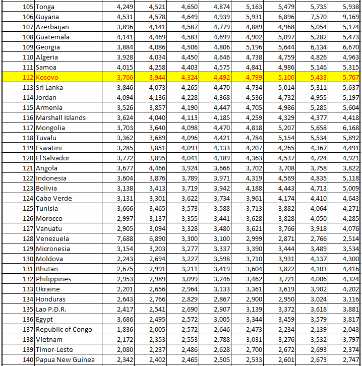 Si Shqipëria dhe Kosova renditen të fundit në Europë (pa përfshirë vendet e ish-Bashkimit Sovjetik) për të ardhurat për frymë, sipas të dhënave të fundit të Fondit Monetar Ndërkombëtare, që ka përditësuar shifrat në “Pasqyrën Ekonomike Globale” të tetorit 2018.