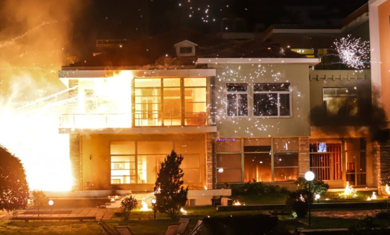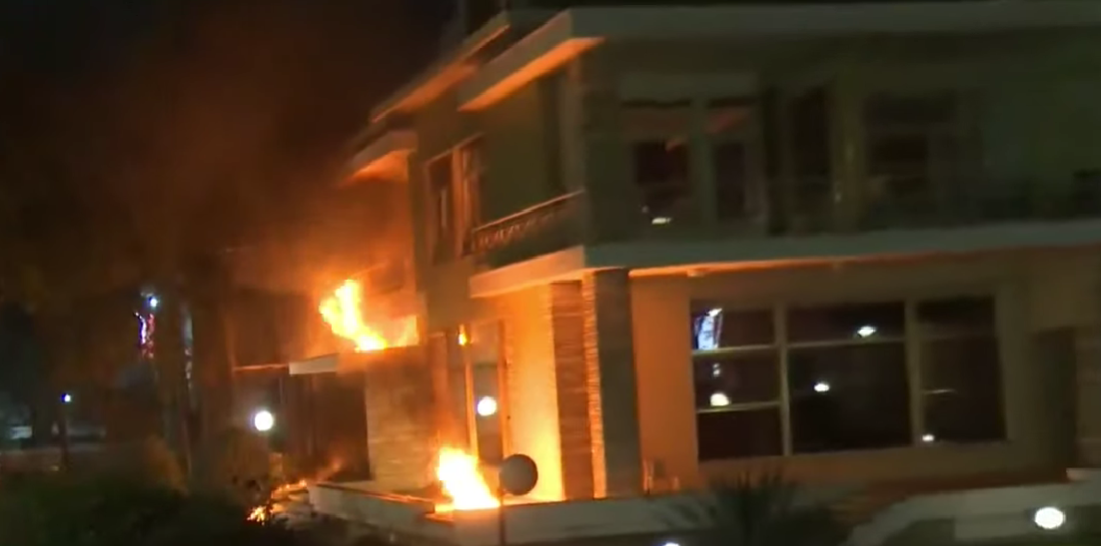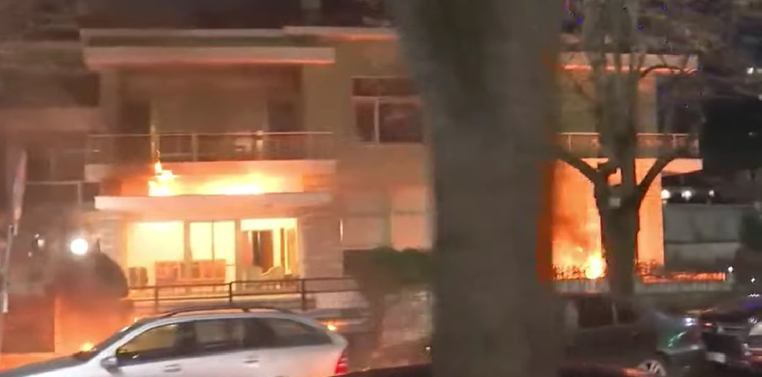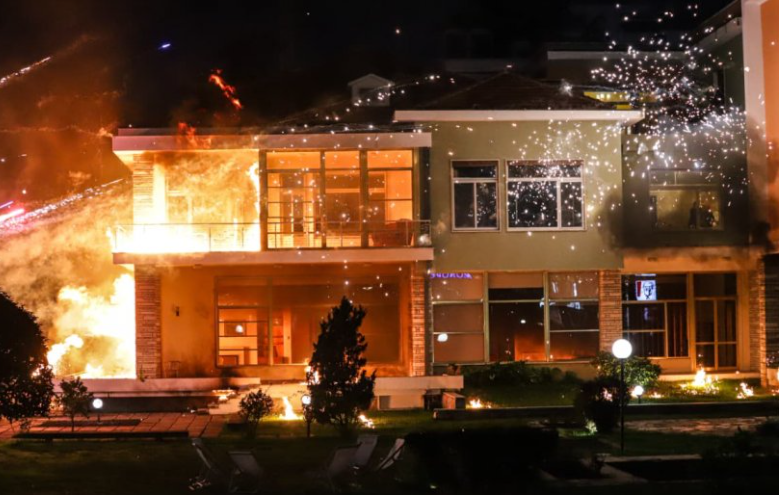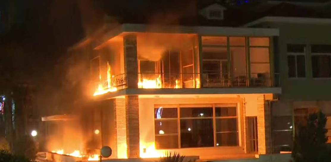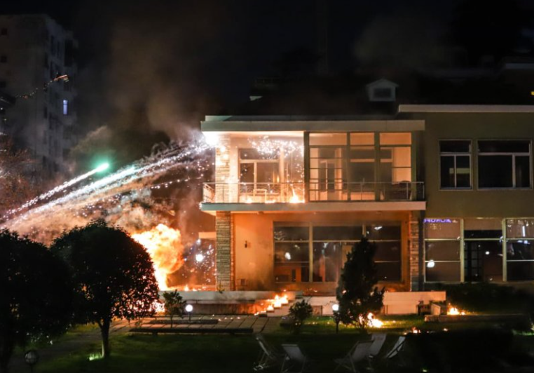 FOTO/ 54 molotovë hidhen tek ish-vila e diktatorit Enver Hoxha, flakë e madhe në zonën e Bllokut