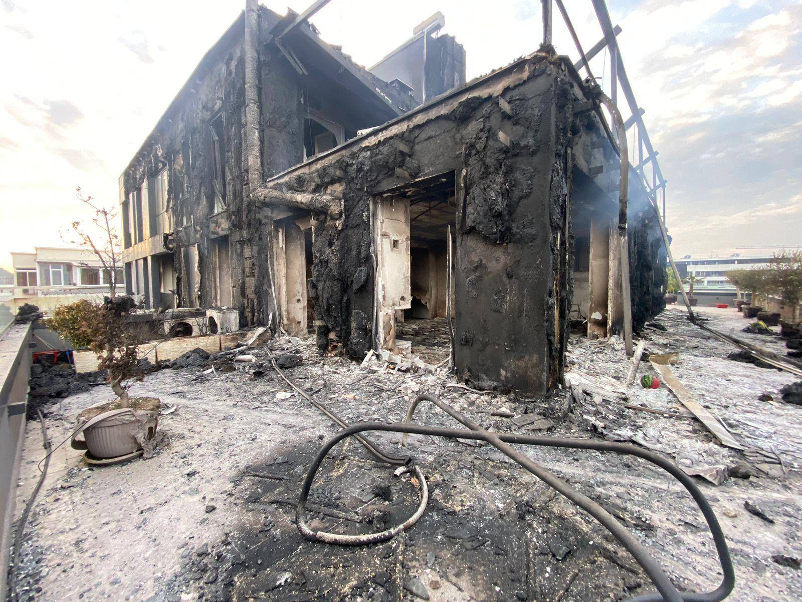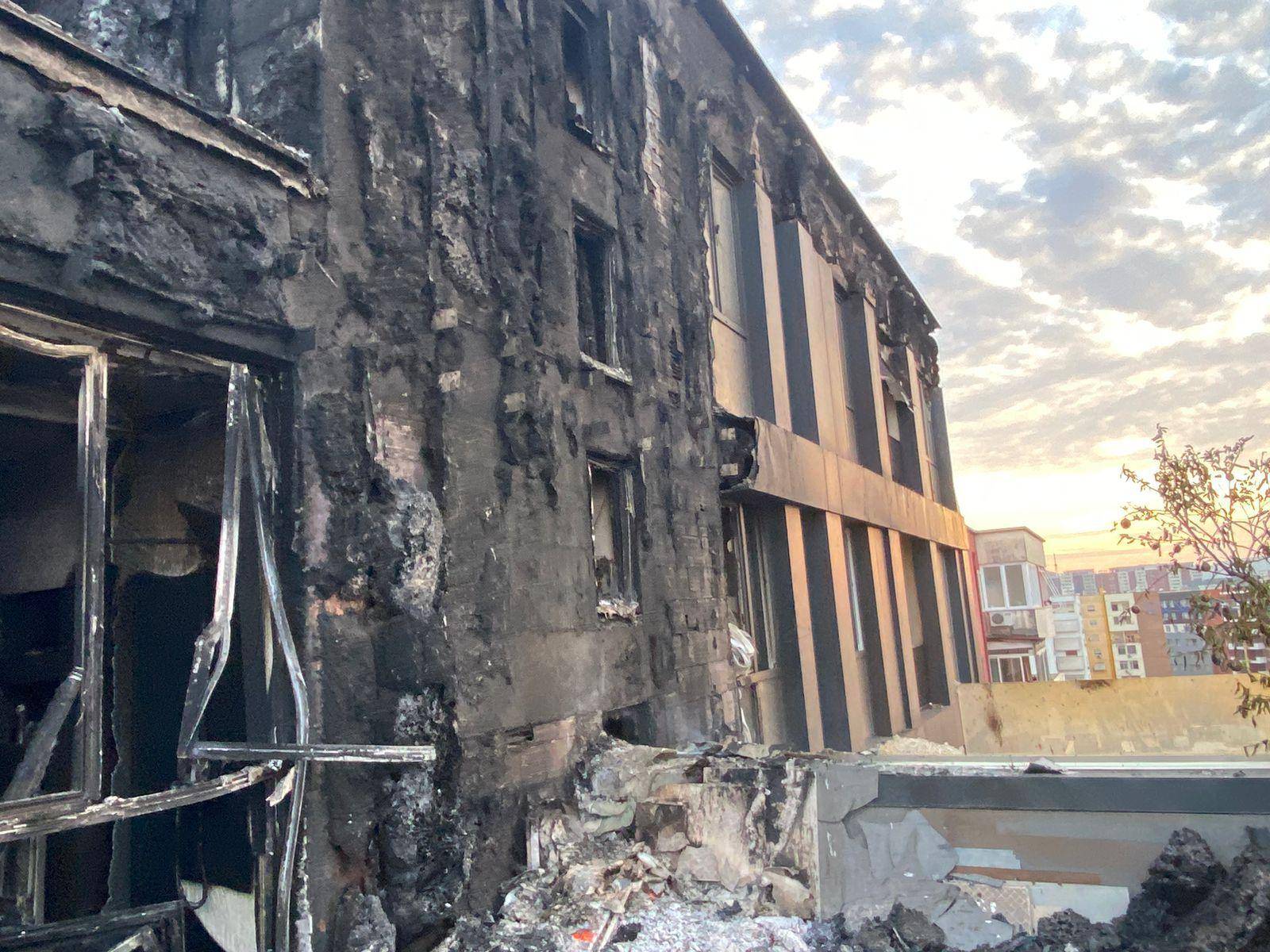 Kati i fundit i pallatit është djegur plotësisht ndërsa disa apartamente kanë pësuar dëme të shumta materiale. Në foto shihet gjendja reale. Kati i dhjetë i pallatit, nga ku nisën dhe flakët, i cili është shkrumbuar totalisht për shkak të zjarrit që zgjati mbi 3 orë.
