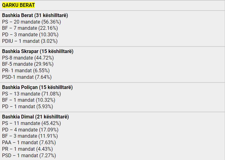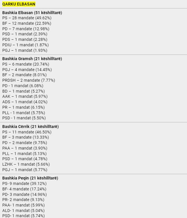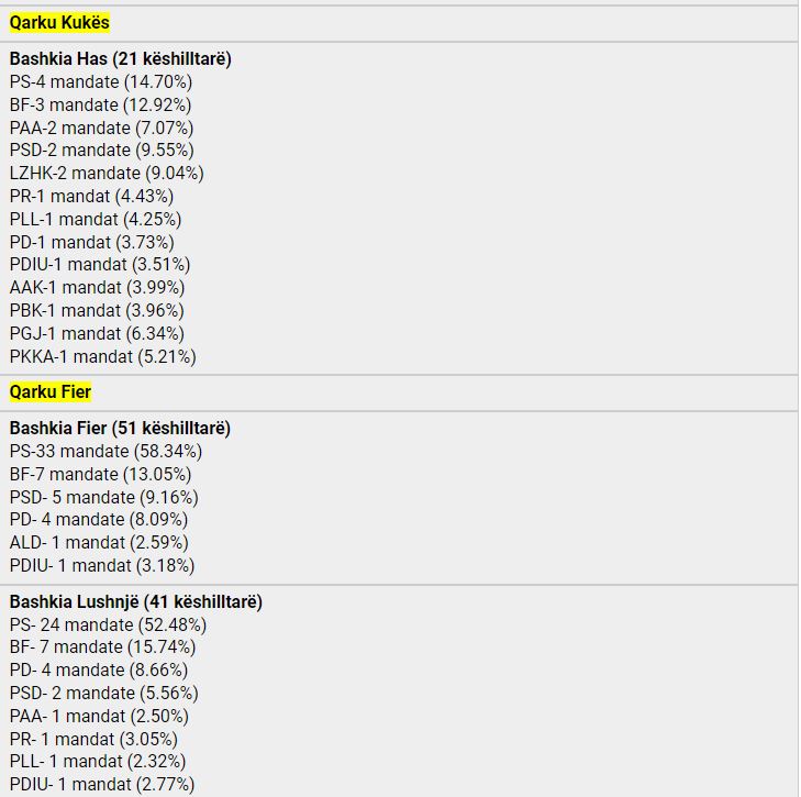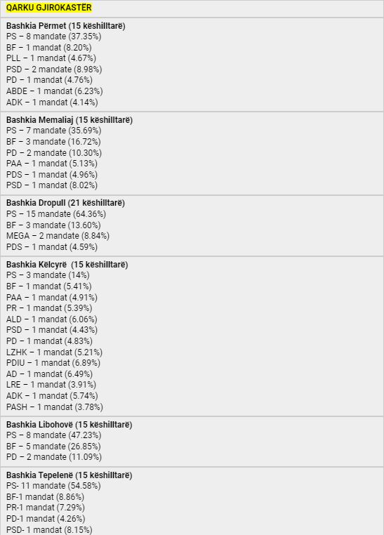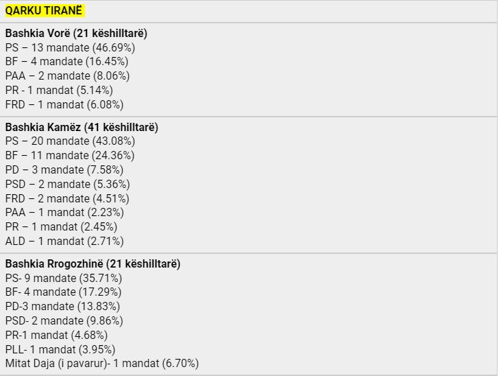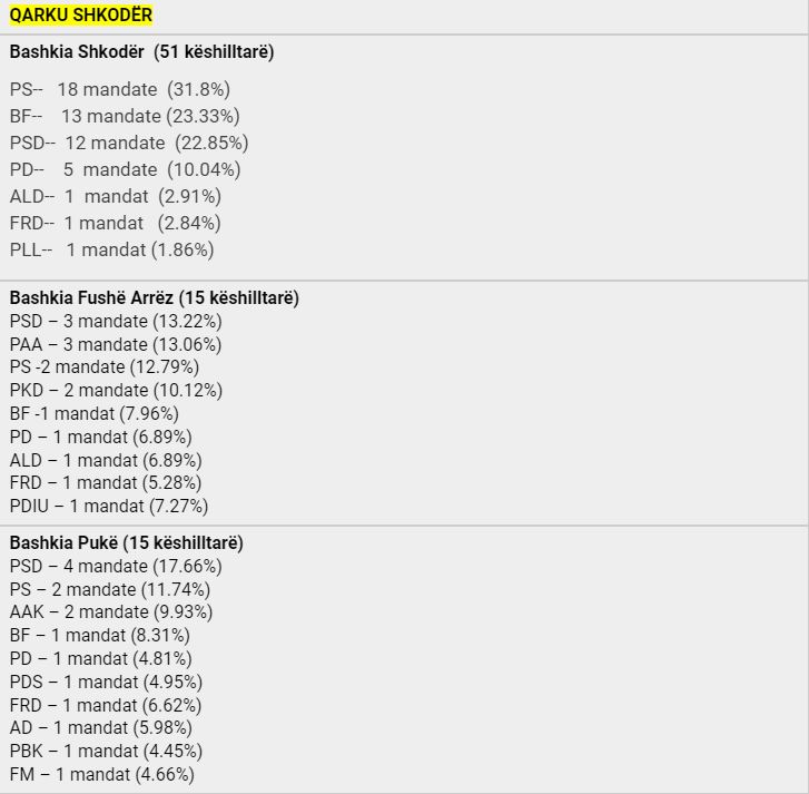 Pas u mbyll numërimi i kutive për kryetarët e bashkive për një mandat 4-vjeçar, ku PS fitoi në 53 bashki, koalicioni ”Bashkë Fitojmë” në 7 bashki dhe MAGNA në 1 bashki. Vijon numërimi i votave për Këshillat Bashkiakë, konfirmohet supermacia e Partisë Socialiste por Berisha-Meta pësojnë një disfatë edhe më të madhe, pasi PD zyrtare shënon një rezultat domethënës. Shikohet një rezultat shumë i mirë për PSD-në e Tom Doshit, e cila konsiderohet një faktor shumë i rëndësishëm elektoral sidomos në Qarkun e Shkodrës, në veçanti bashkinë e madhe të Shkodrës.