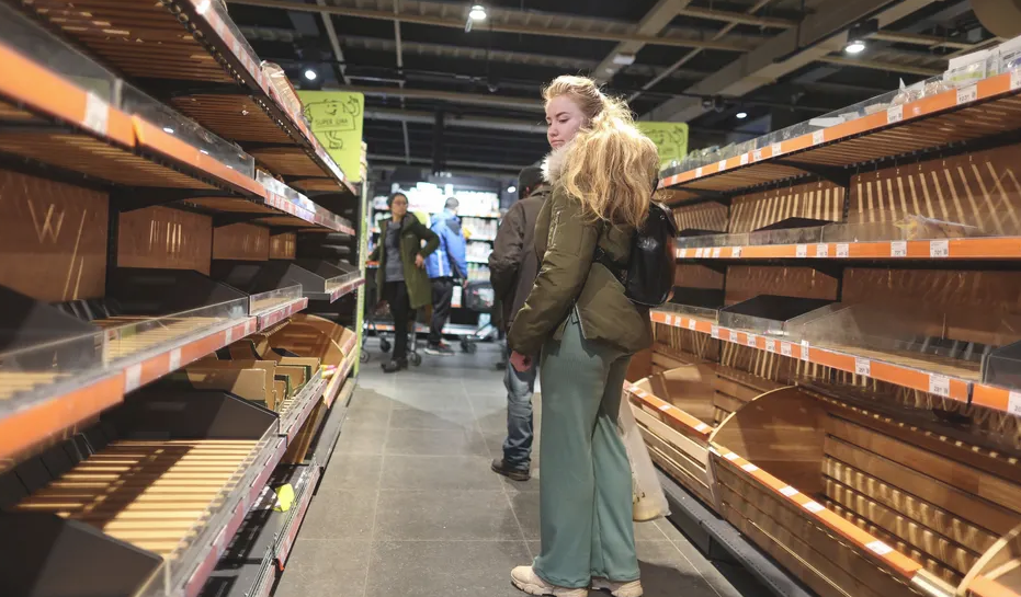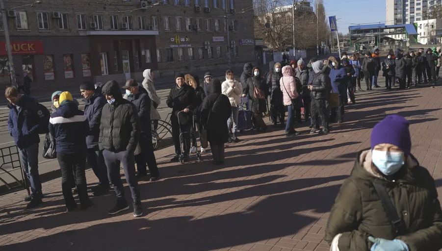 Lufta në Ukrainë po sjell jo vetëm refugjatë drejt shteteve europiane, por edhe për ata që kanë qëndruar në Kiev të rrijnë me radhë të gjata për ushqime. Në shumicën e rastëve presin me orë të tëra dhe nuk gjejnë asgjë në markete si në fotot e mëposhtëme.