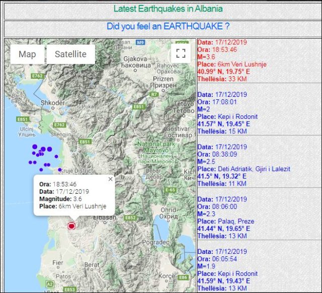 FOTO/ Tjetër lëkundje tërmeti në vend, ja ku ishte epiqendra këtë herë (Detajet)