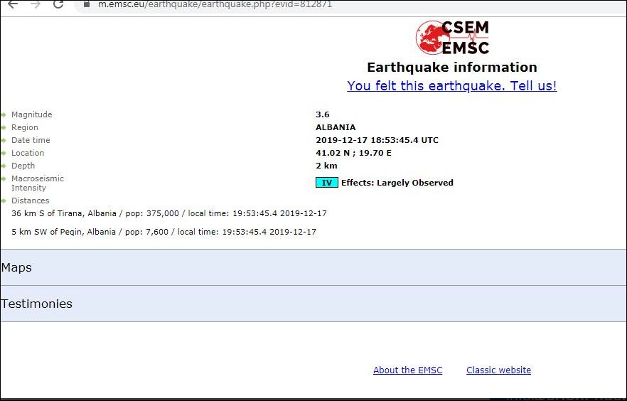 Kujtojmë se Shqipëria u trondit nga një tërmet i fuqishëm në datë 26 nëntor si pasojë e të cilit, 51 persona humbën jetën, ndërsa mijëra janë larguar nga banesat e tyre të dëmtuara. Sizmologët shprehen se pas-goditjet janë normale dhe do të vijojnë për disa muaj.