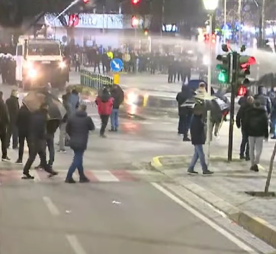 Përplasje të tjera mes forcave të rendit dhe protestuesve të PD janë regjistruar, këtë herë në hyrje të Rrugës së Elbasanit, disa dhjetëra metra larg Kuvendit. Policia ka hedhur ujë me presion me shumicë drejt një grupi protestuesish në vendosur në pjesën e kryqëzimit, ndërsa këta të fundit kanë hedhur disa herë molotovë, duke prekur edhe autobotet e policisë. Po ashtu policia ka hedhur edhe gaz lotsjellës për të shpërndarë protestuesit.