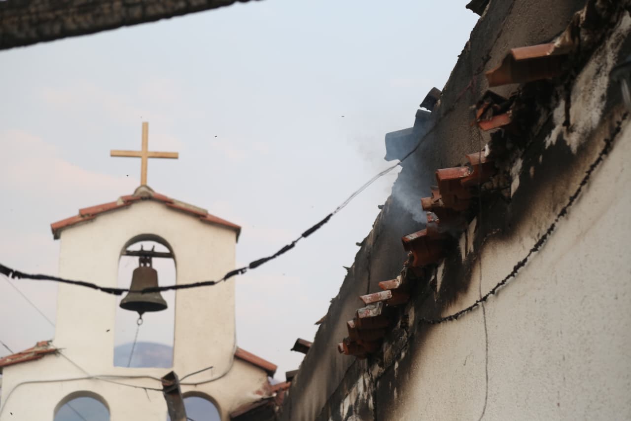 Vatrat e frikshme të zjarrit nuk kursejnë as objektet e kultit. Më e prekur nga ky fenomen ka dalë Bashkia e Delvinës, ku dëmet janë katastrofike dhe situata kritike vijon ende, teksa grupet operacionale po luftojnë me flakët nga ajri dhe toka. Zjarret në Delvinë nuk kanë kursyer as kishat. Një prej tyre është e rrënuar tërësisht nga flakët, ku ka mbetur vetëm fasada, çatia e rrëzuar plotësisht, ku ka grumbuj inertesh.