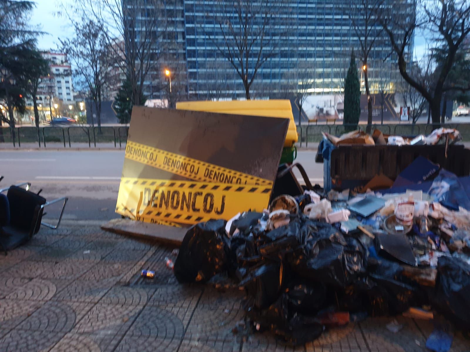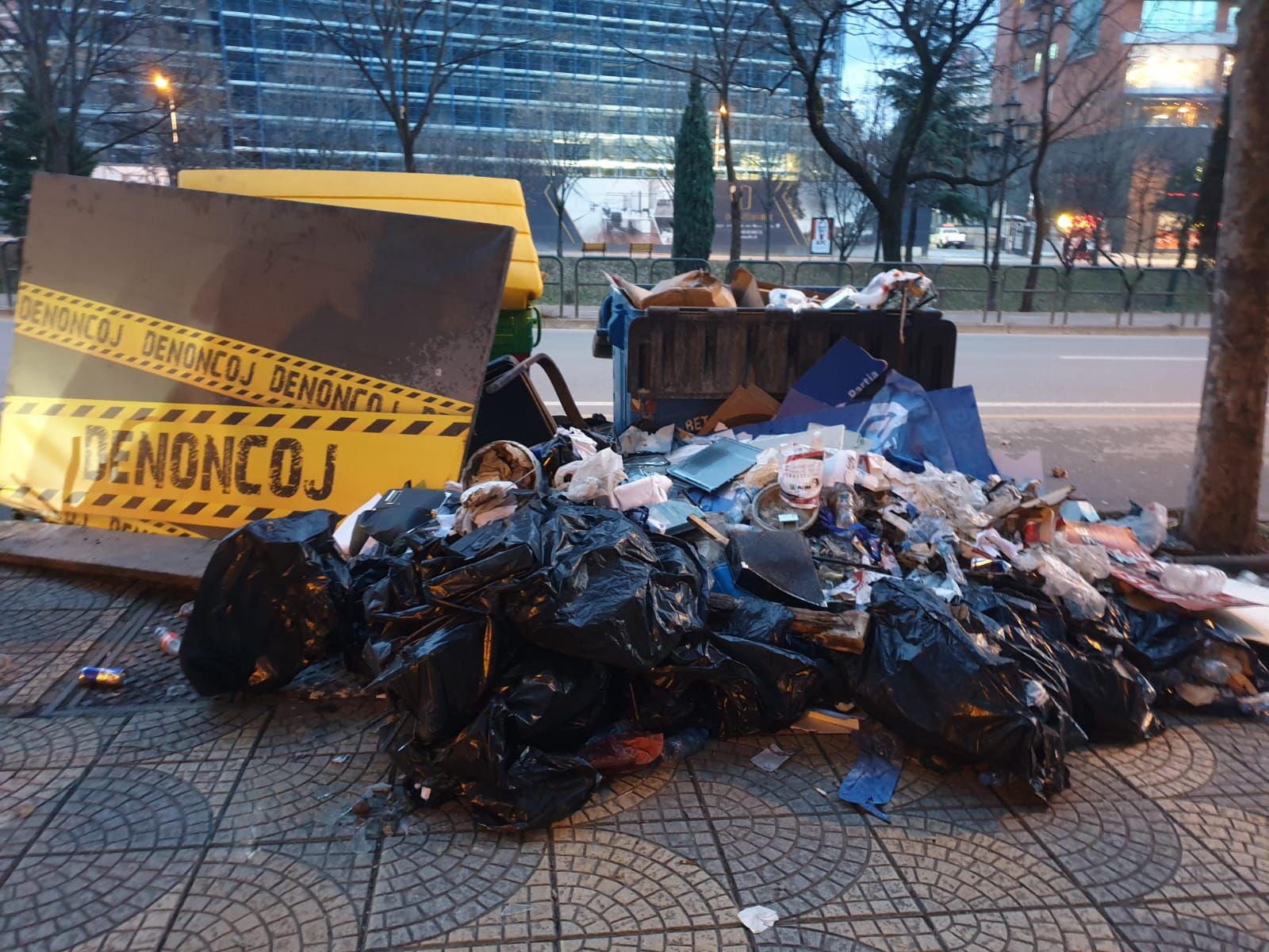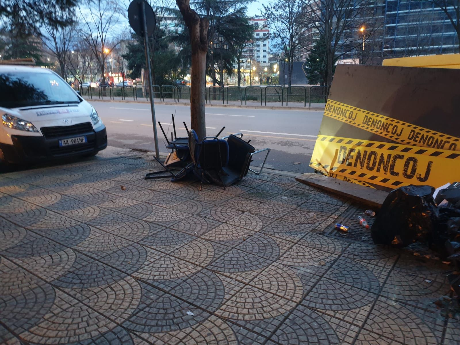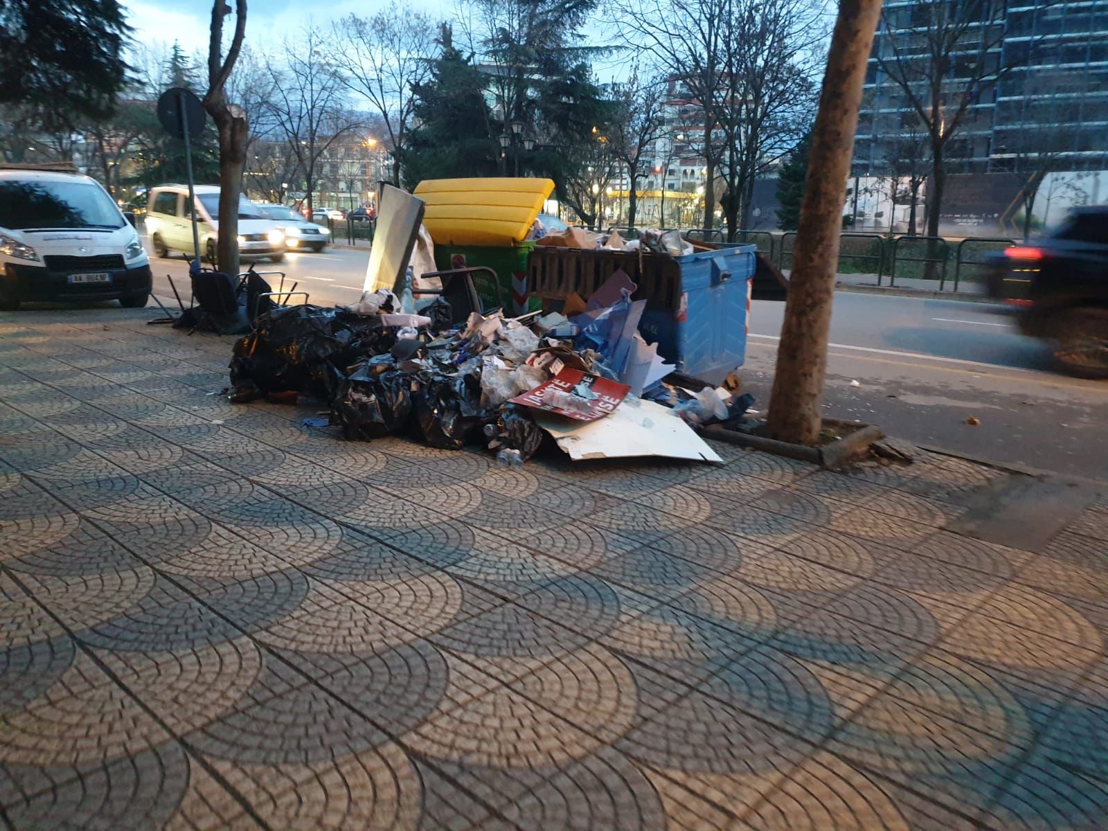 Me sa duket, drejtuesit e PD i kanë rënë shkurt dhe plehrat i kanë hedhur në trotuar, pak metra nga dera e selisë, pa menduar per ndotjen e mjedisit, edhe pse kazanët e bashkisë janë aty. Xhama, tavolina të thyera, gurë dhe shkopinj janë hedhur jashtë çdo norme duke pushtuar trotuarin ku kalojnë qytetarë të shumtë dhe nëna me karroca.