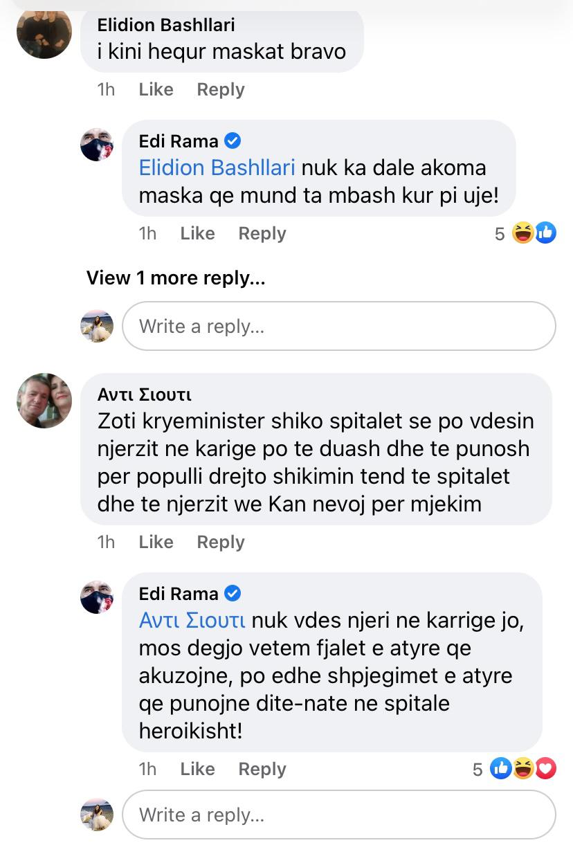 “I keni hequr maskat, po vdesin njerëzit në karriget e spitaleve”, Rama kapet me komentuesit në facebook