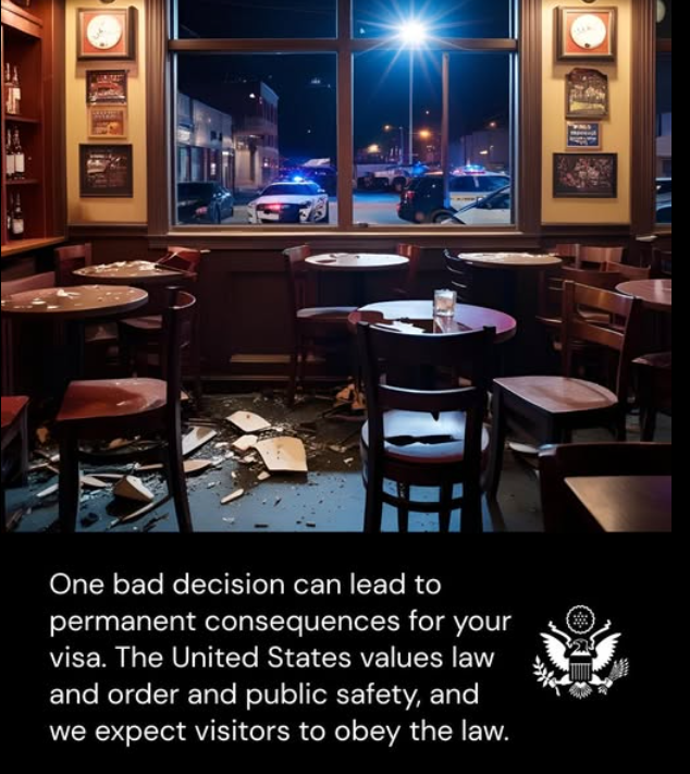 Ambasada Amerikane në Tiranë shkruan në statusin e saj në facebook: “Nëse arrestoheni për sulm, dhunë në familje ose krime të tjera ndërsa ndodheni në Shtetet e Bashkuara, viza juaj amerikane mund të anulohet dhe mund të bëheni të papërshtatshëm për viza në të ardhmen. Një vizë është një privilegj, jo një e drejtë – e cila mund të hiqet nëse shkelni ligjin”.