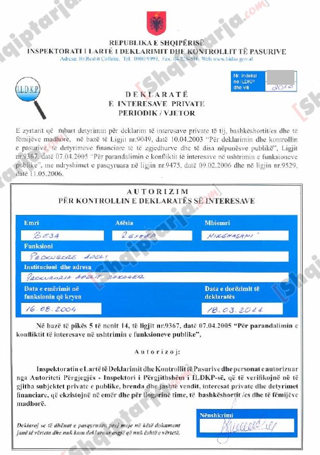 Deklerata e pasurisë së prokurores Besa Nikëhasani ( Kliko për të para dokumentin e plotë)
