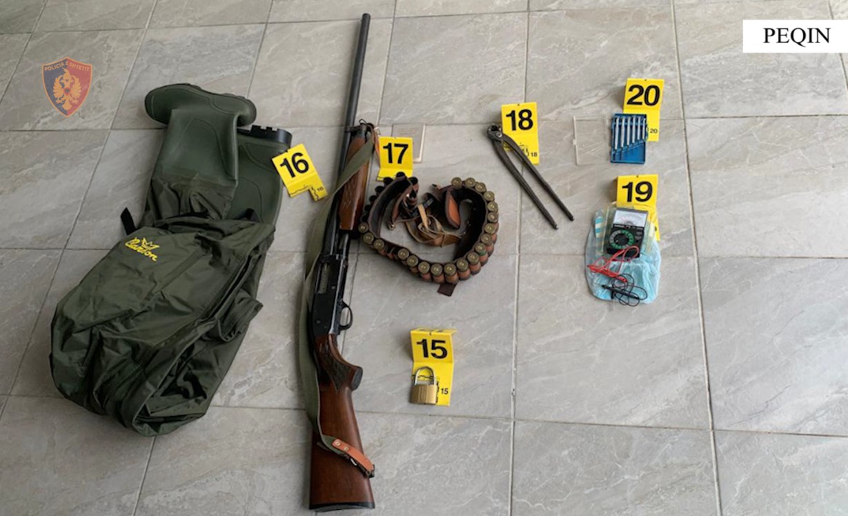 Gjatë kontrollit fizik, të arrestuarit iu gjetën një mjet (darë) që e përdorte për të kryer vjedhjet, ndërsa gjatë kontrollit në banesën e tij u gjetën arma e gjahut dhe sendet e vjedhura.