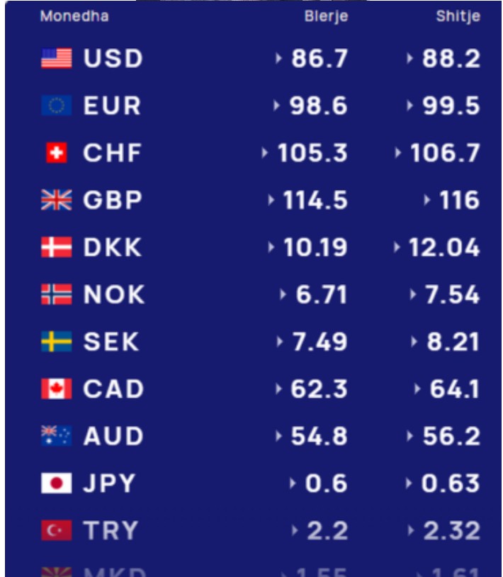 Dollari amerikan blihet me 86.7 lekë, ndërsa shitet me 88.2 lekë.
