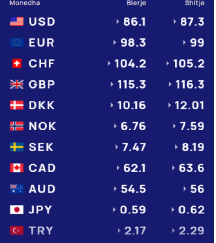 Euro do të blihet me 98.3lekë dhe do të shitet me 99 lekë.