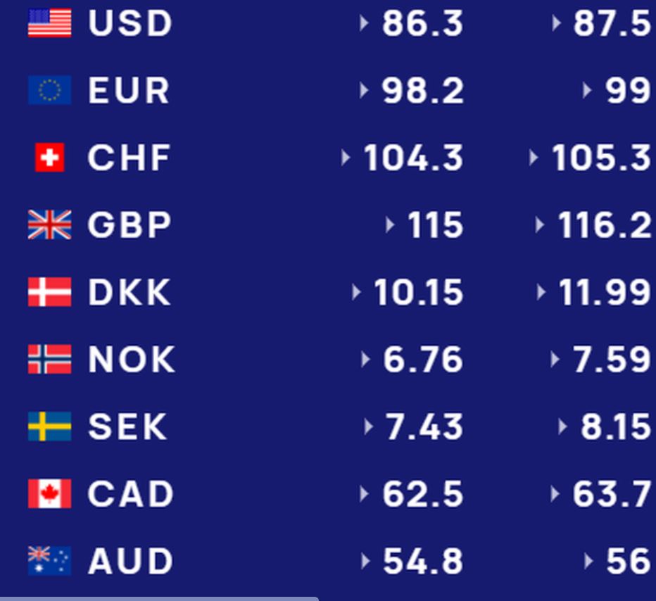 Franga zvicerane do të blihet me 104.3 lekë dhe do të shitet me 105.3 lekë.