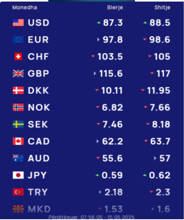 Franga zvicerane do të blihet me 103.5 lekë dhe do të shitet me 105 lekë.