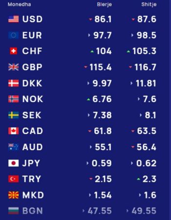 Euro do të blihet me 97.7 lekë dhe do të shitet me 98.5 lekë.