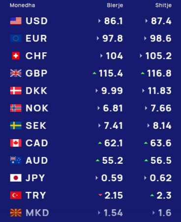 Sot, në tregun e këmbimit valutor shqiptar, një dollar do të blihet me 86.1 lekë dhe do shitet me 87.4 lekë. Euro do blihet me 97.8 lekë dhe do shitet me 98.6 lekë.