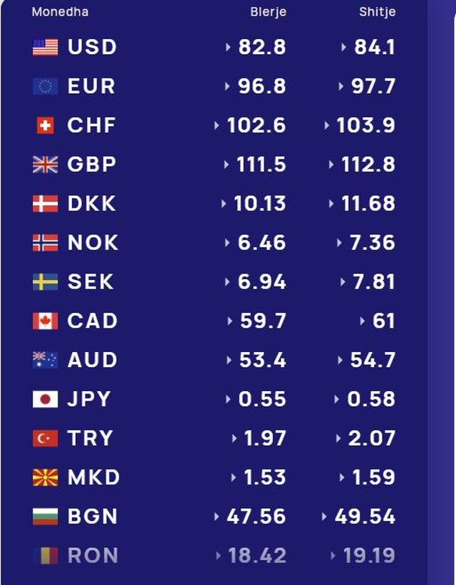 Franga zvicerane do të blihet me 102.7 lekë dhe do të shitet me 104 lekë.